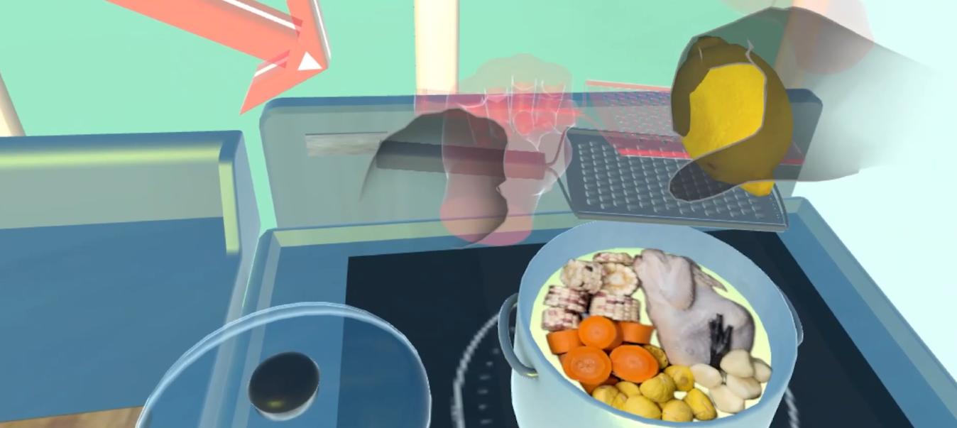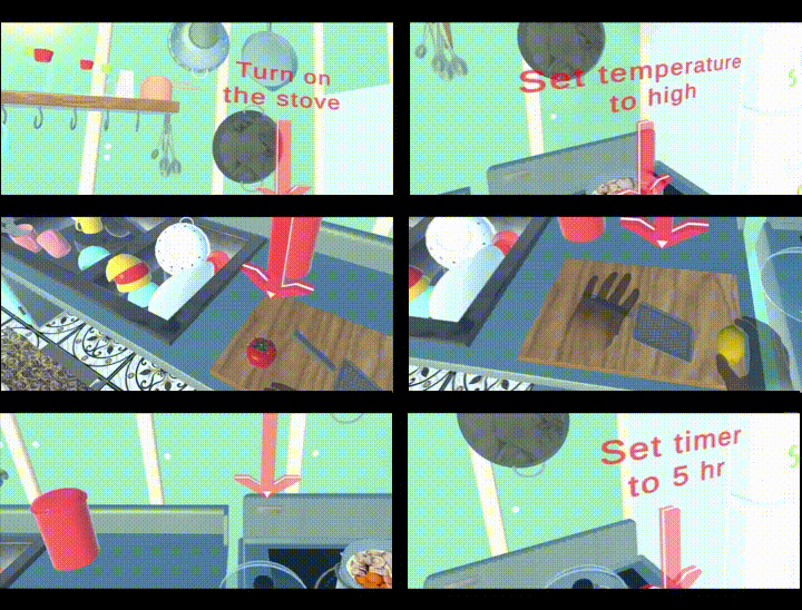 The steps users needed to follow in the cooking training scenario in the kitchen.