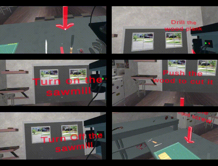 The steps users needed to follow in the woodworking training scenario in the garage.